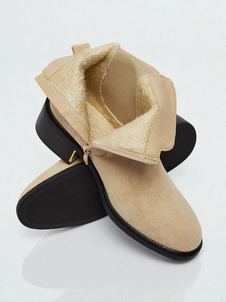 Čevlji Anika - Stilski gležnarji iz semiša v bež barvi