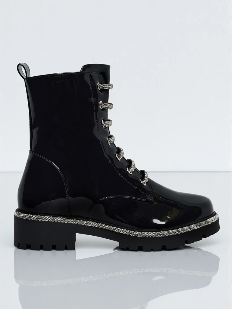 Lakirani ženski gležnarji s vezalkami Fjorra