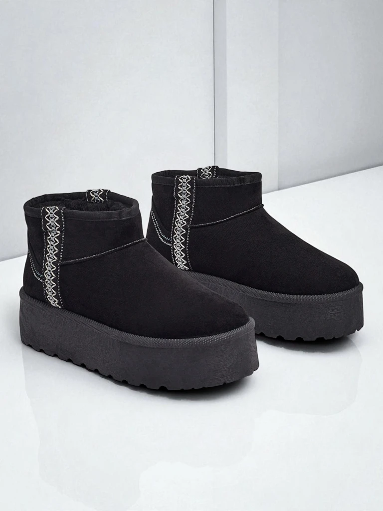 • Odlični ženski zimski škornji za sneg z debelejšim podplatom platforme. Zgornji del je izdelan iz ekološkega semiš usnja, notranjost pa je izolirana s krznom. Idealna osnova za zimo!