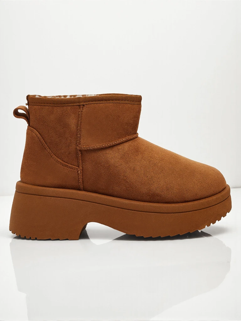 - Odlični ženski zimski škornji za sneg z debelejšim podplatom platforme. Zgornji del je izdelan iz ekološkega semiš usnja, notranjost je izolirana s krznom. Idealna osnova za zimo!