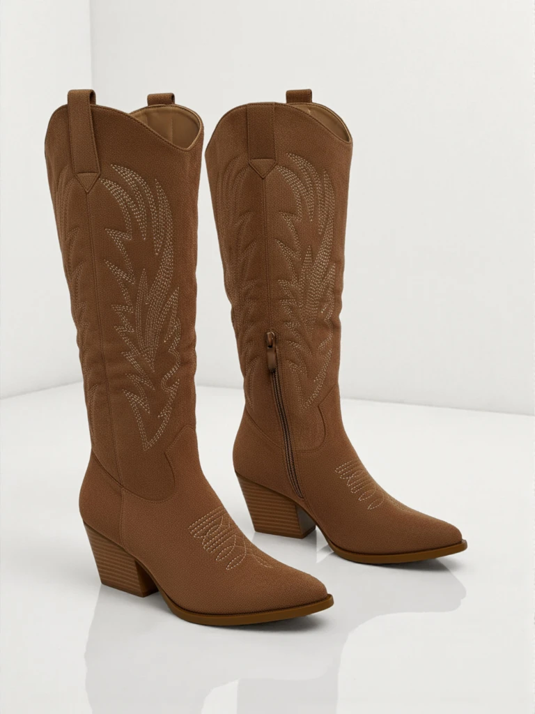 - Kavbojski škornji s peto, izdelani iz ekološkega semiša. Zapenjajo se z zadrgo in imajo tekstilno podlogo. Primerni so za številne ženske stilske kombinacije!