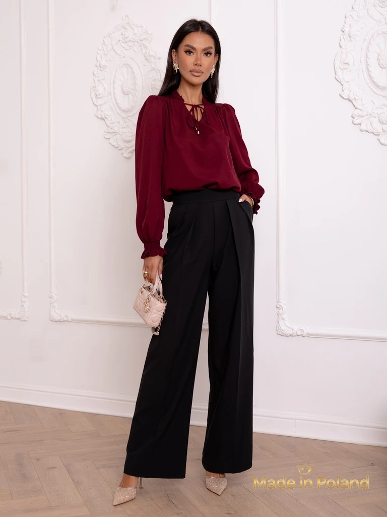 - Elegantna bluza s subtilno vezavo pri dekolteju poudarja ženstveno nežnost. Mehak material objame silhueto, vezava pa doda prefinjen poudarek. Idealna za večerne izhode in posebne priložnosti!