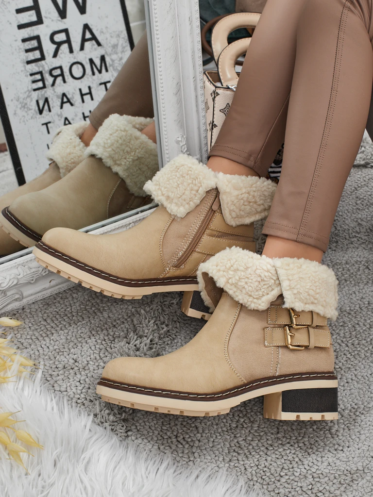 - Damskie botki zapinane na zamek. Model wykonany ze skóry ekologicznej, na płaskiej podeszwie. Posiada ocieplenie a'la kożuszek. Wygodny i stylowy, idealny na jesień!