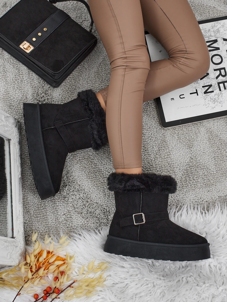 - Odlični ženski zimski škornji za sneg z debelejšim podplatom. Zgornji del je izdelan iz ekološkega semiš usnja, notranjost je izolirana s krznom. Idealna osnova za zimo!