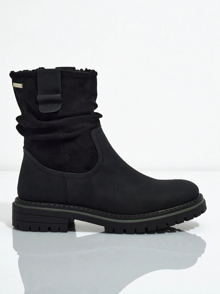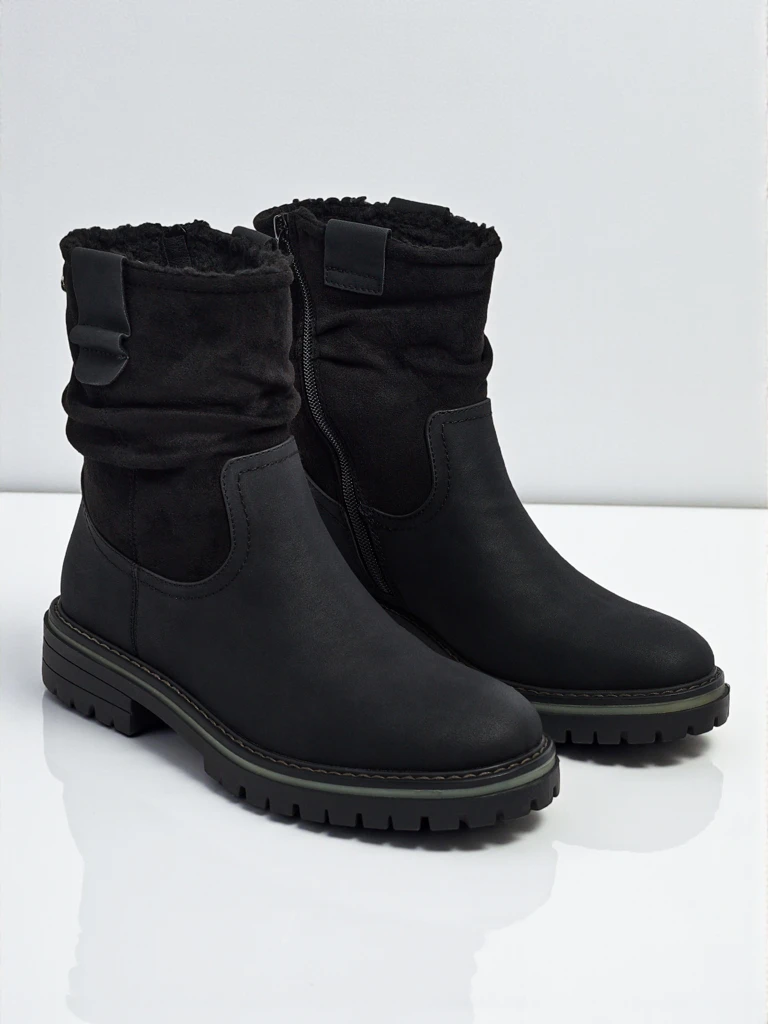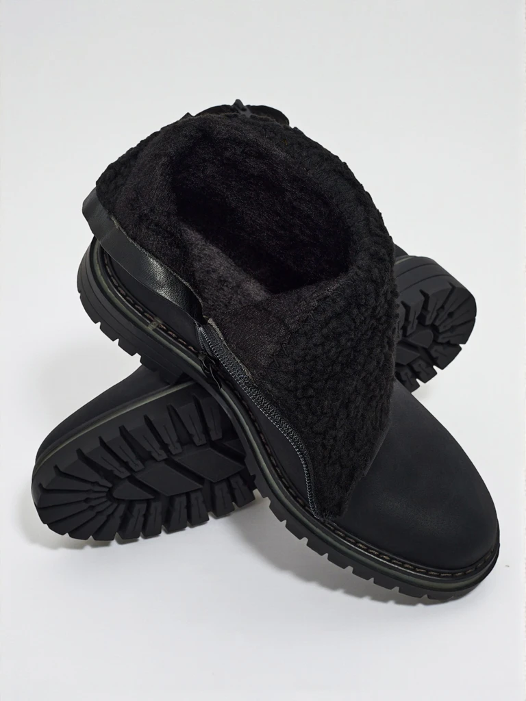 - Ženski gležnarji z zadrgo. Model je izdelan iz ekološkega semiš usnja, z ravnim podplatom. Ima podlogo iz umetnega krzna. Okrašeni z rahlo nagubanim zgornjim delom. Udobni in elegantni, idealni za jesen!
