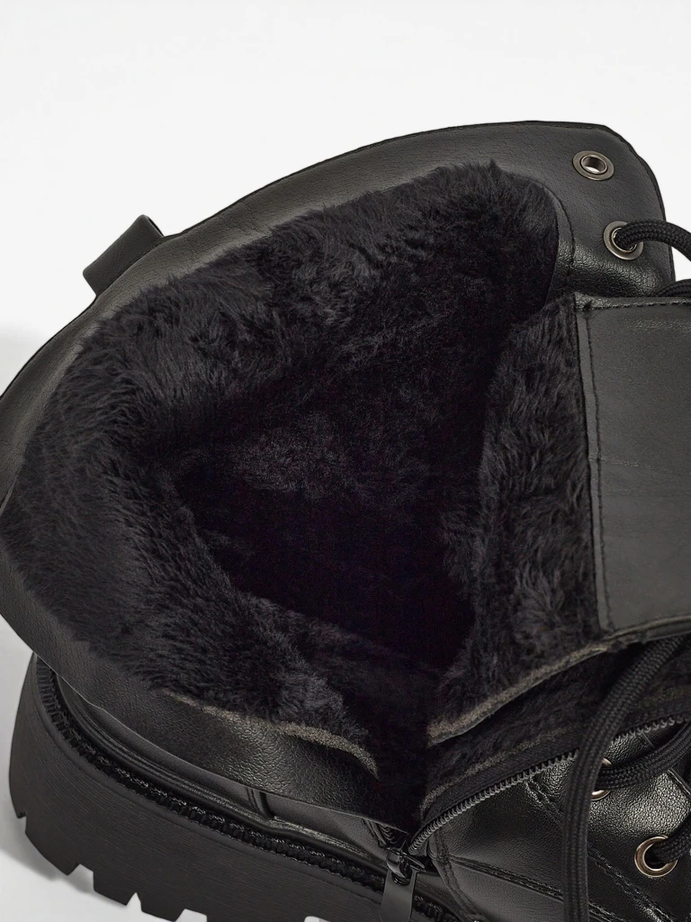 - Ženski gležnarji v stilu delavskih škornjev so edinstvena obutev, ki združuje stil in udobje. Izdelani so iz eko usnja in podloženi z nežnim krznom. Model je z vezalkami in zadrgo. Debelejši podplat dodaja udobje na vsakem koraku.