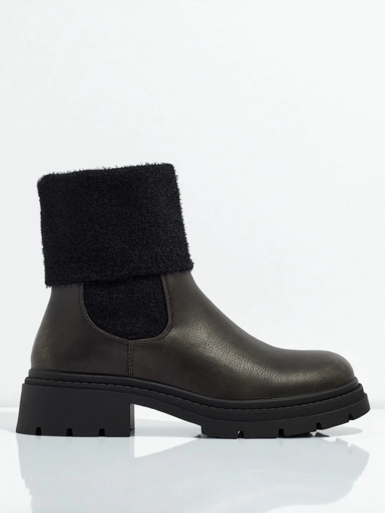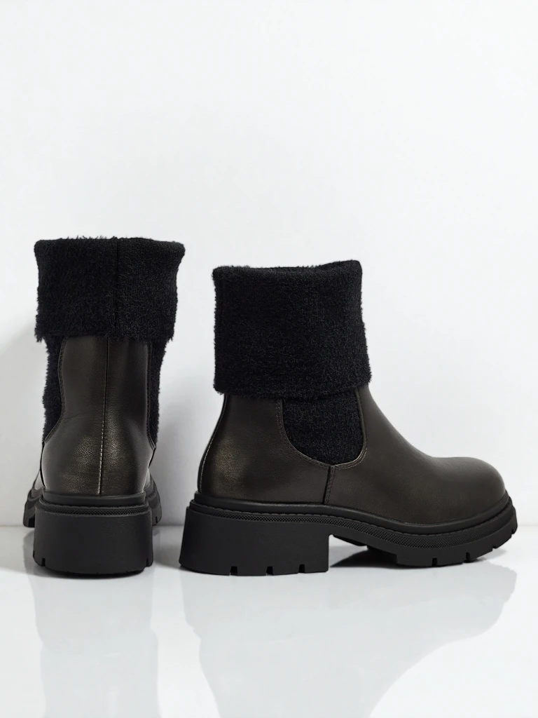 - Ženski gležnarji na navlačenje s krznom na zgornjem delu. Model je izdelan iz ekološkega usnja, z ravnim podplatom. Ima podlogo, ki spominja na krzno. Udobni in elegantni, idealni za jesen!