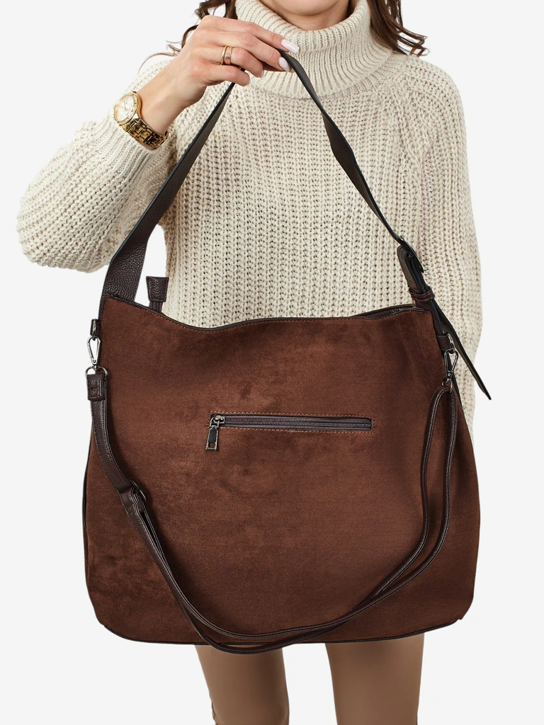 - Eleganten ženski torba iz ekološkega semiš usnja. 1 predal s pregrado, 4 žepi, odstranljiv, nastavljiv pas. Idealna za delo in vsakdan – prostorna, modna in praktična.