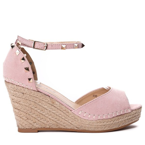 • Rewelacyjne sandały na koturnie, z odkrytym noskiem. Obuwie wykonane ze skóry ekologicznej zamszowej. Ozdobione złotymi ćwiekami. Model bardzo wygodny i solidnie wykonany. Pasuje do wielu kobiecych stylizacji.