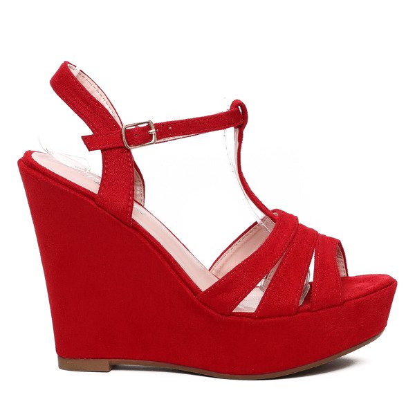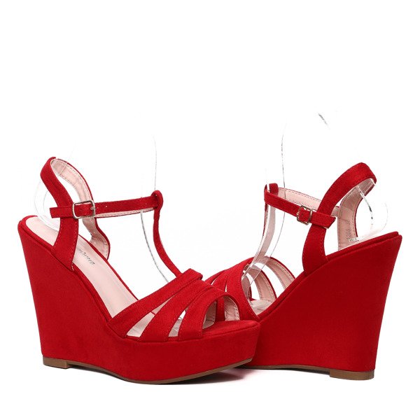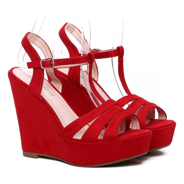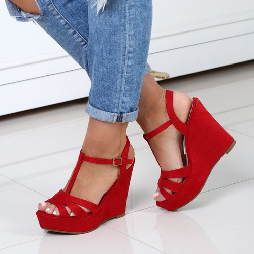 Czerwone sandały na koturnie - Obuwie