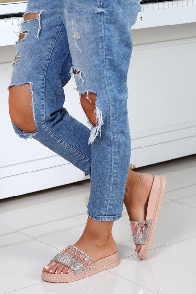 Różowe klapki z kamyczkami Avianna- Obuwie