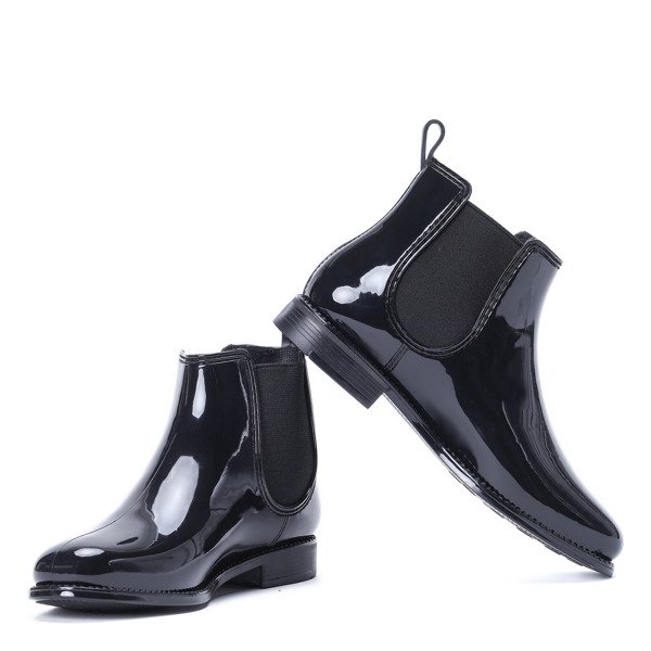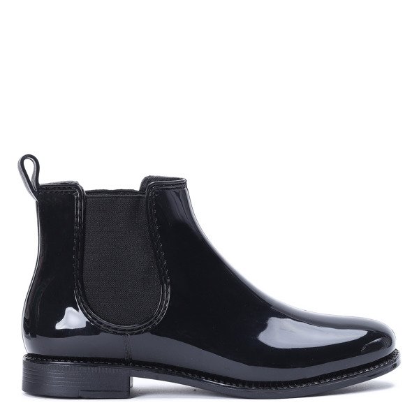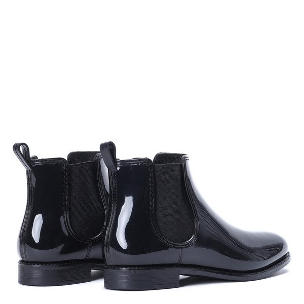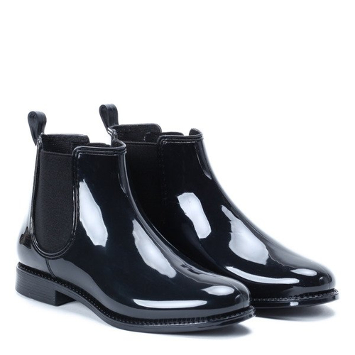 Czarne kalosze lakierowane- Obuwie