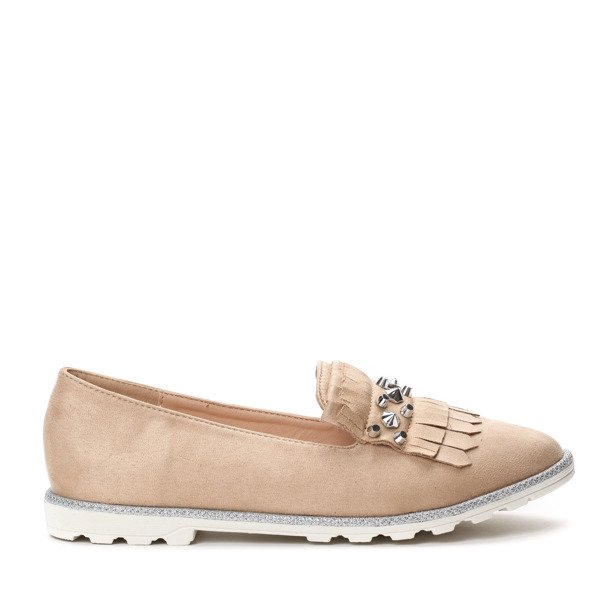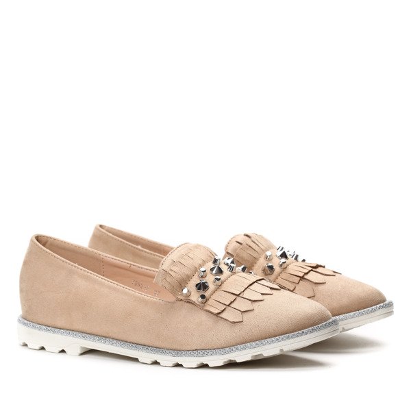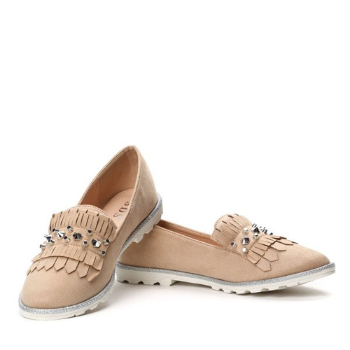 Beżowe mokasyny z frędzlami i ćwiekami Larsa- Obuwie