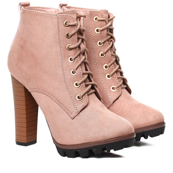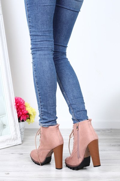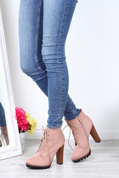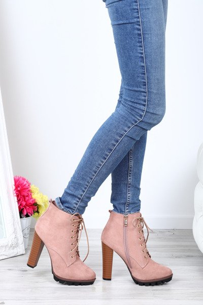 Różowe botki na słupku Whitney- Obuwie