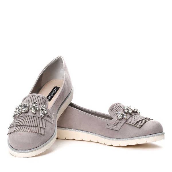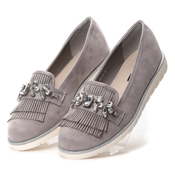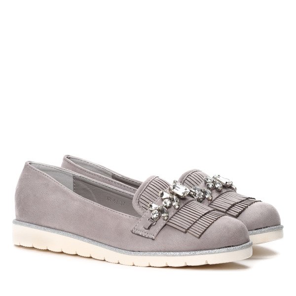 Szare mokasyny z frędzlami i cyrkoniami Micheline- Obuwie