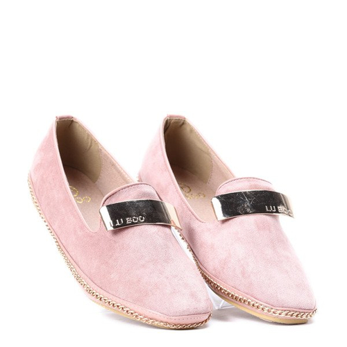 Różowe mokasyny z ozdobną blaszką Ines- Obuwie