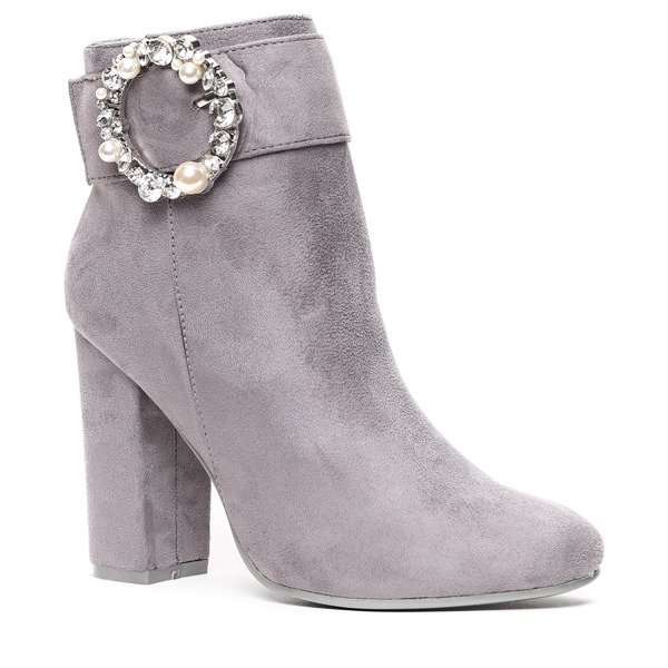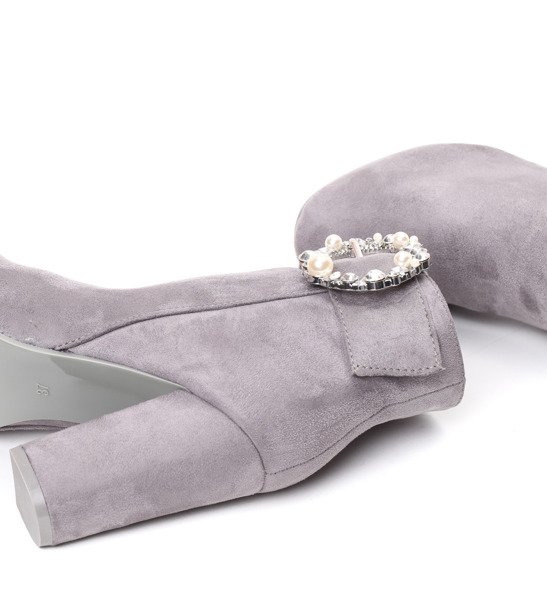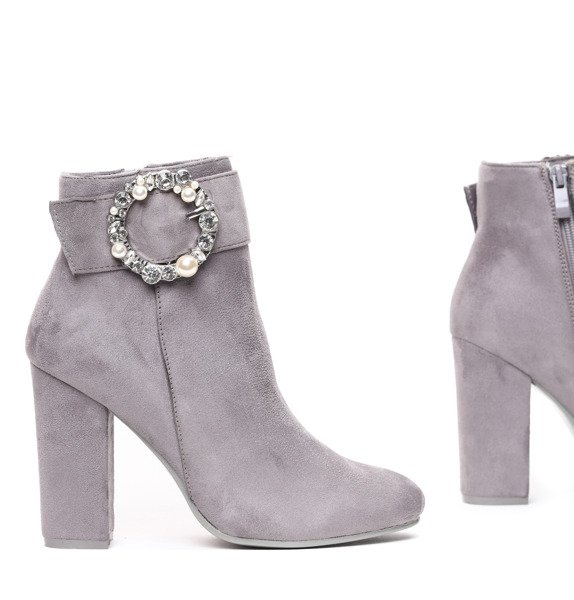 Szare botki na wyższym słupku z ozdobą Emmaline- Obuwie