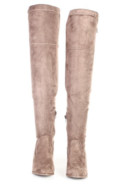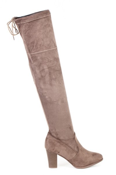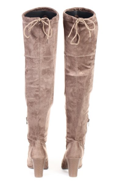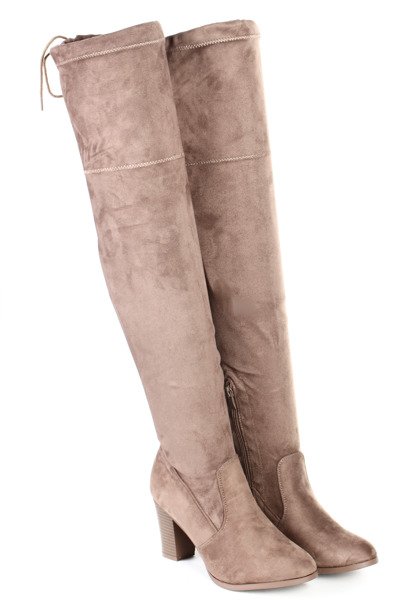 Szarobrązowe klasyczne kozaki z zamszu - Obuwie