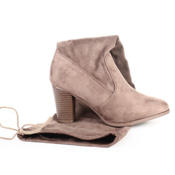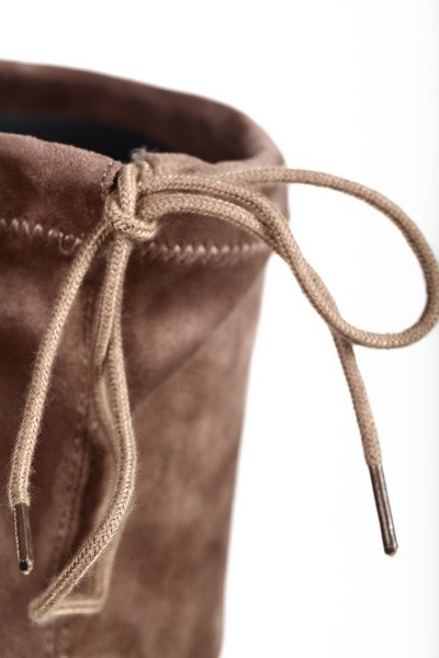 • Fantastyczne kozaki wykonane z zamszu. Buty na słupku, z krótkim suwakiem na wysokości kostki. Na górze cholewki sznureczek, dzięki, któremu mamy możliwość regulacji jej szerokości. Cholewka nie jest ocieplana. Solidnie wykonane i bardzo wygodne.