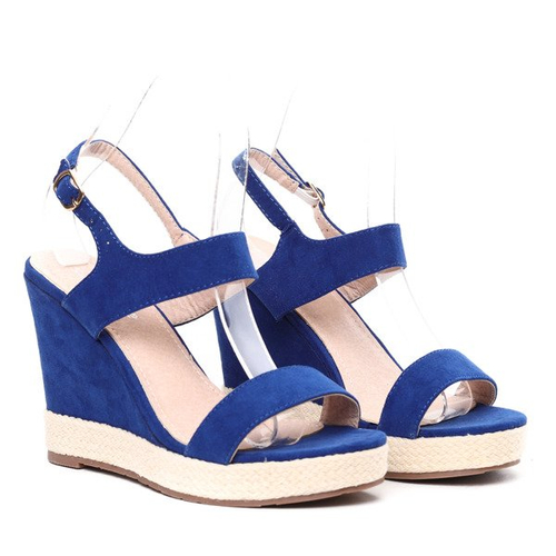 Ciemnoniebieskie sandały na koturnie Stella- Obuwie