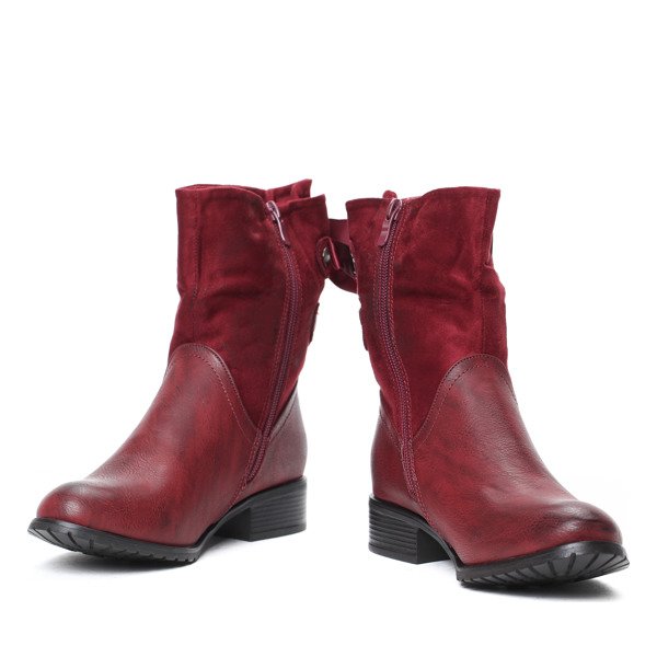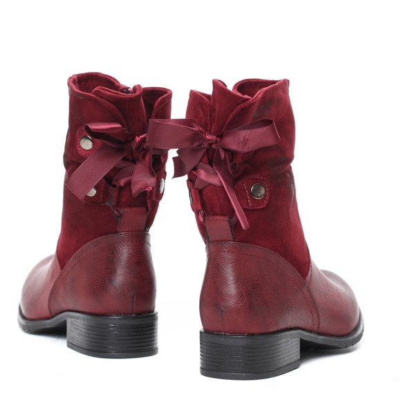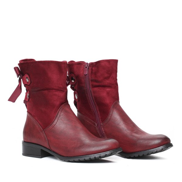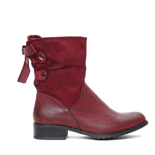 - Botki na płaskim obcasie wykonane z ekologicznego zamszu oraz ekologicznej skóry. W środku delikatne ocieplenie w formie futerka. Model zapinany na suwak po boku. Tylna część wiązana wstążką. UWAGA: produkt może posiadać zabrudzenia na cholewce!