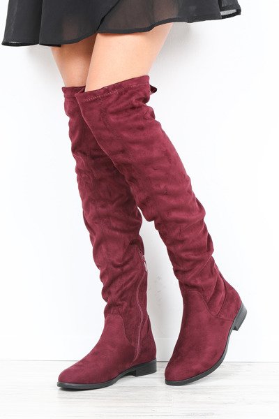 Bordowe kozaki na płaskim obcasie Kalina- Obuwie