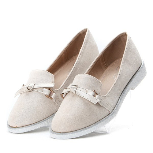 Błyszczące, beżowe mokasyny Riley- Obuwie