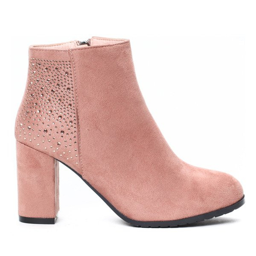 - Eleganckie botki na słupku wykonane z zamszu ekologicznego. Cholewka zdobiona z boku cyrkoniami. Model zapinany na suwak. Brak ocieplenia. Stanowią świetne połączenie ze spodniami.