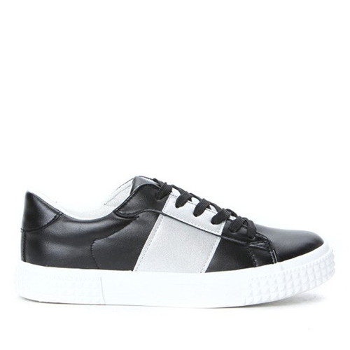 • Stylowe, dwukolorowe tenisówki wykonane ze skóry ekologicznej. Wkładka pokryta tkaniną. Na podeszwie zdobienie imitujące ćwieki. Idealne na co dzień. Świetnie się sprawdzą z jeansami!