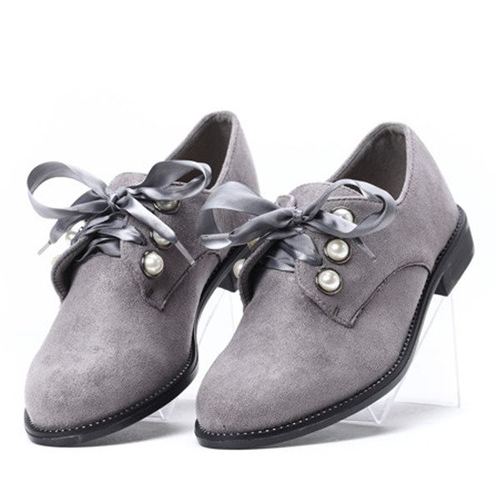 • Niesamowite półbuty wykonane z błyszczącego zamszu ekologicznego. Cholewka zdobiona perełkami, a podeszwa drobnymi cyrkoniami. Buty wiązane wstążką. Wkładka pokryta skórą ekologiczną. Model jak najbardziej będzie się sprawdzał z eleganckimi stylizacjami!