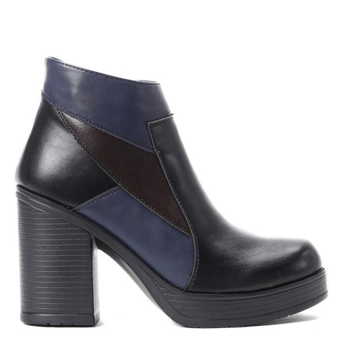 Czarno-niebieskie botki na słupku Grace- Obuwie