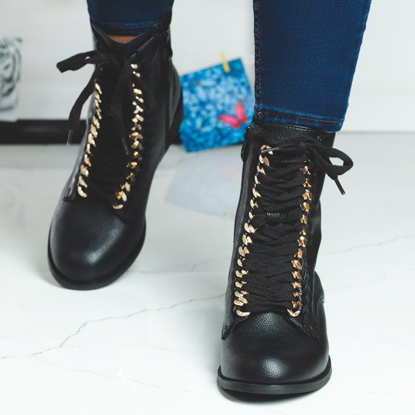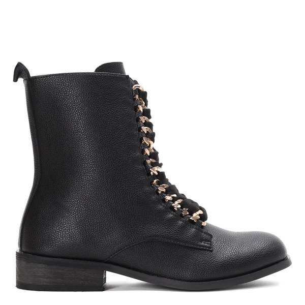 - Wysokie workery wykonane ze skóry ekologicznej. Buty sznurowane oraz zapinane na suwak, który znajduje się po boku. Model idealny na co dzień.