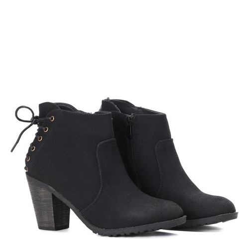 • Eleganckie botki na słupku wykonane z matowego, ekologicznego zamszu. Model zapinany na suwak z boku. Cholewka z tyłu zdobiona jest wiązaniem. W środku delikatne ocieplenie w formie futerka. Pasują zarówno do spódnic jak i spodni!