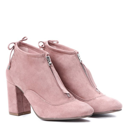 - Eleganckie botki na słupku wykonane z zamszu ekologicznego. Model wsuwany i zapinany na suwak z przodu. Brak ocieplenia. Idealny dodatek do spodni!