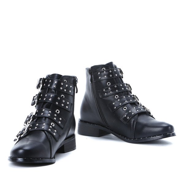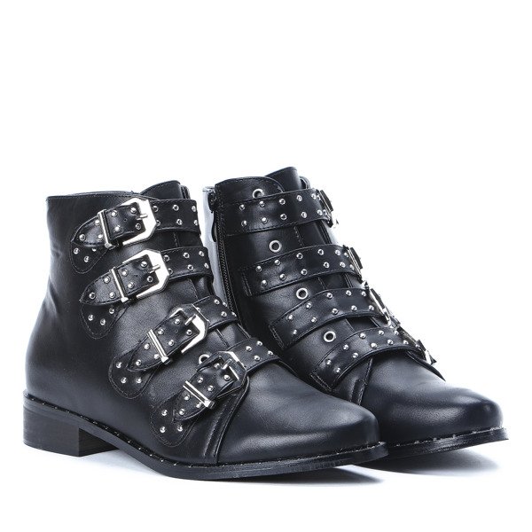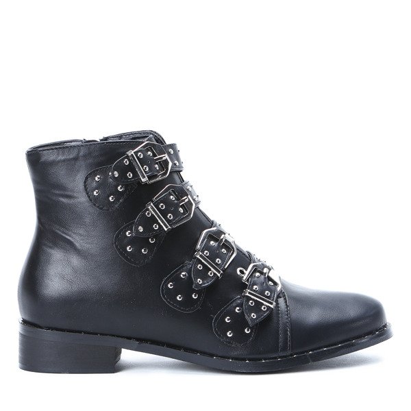 Czarne botki z czterema sprzączkami Douvite- Obuwie