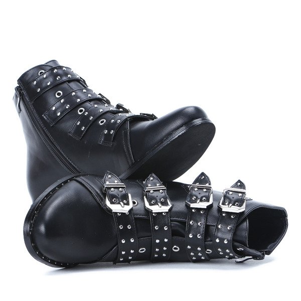 - Niezwykłe botki w rockowym stylu! Cholewka wykonana ze skóry ekologicznej. Model zapinany czterema klamrami oraz suwakiem, który znajduje się po boku suwak. Stanowią świetne połączenie ze spodniami!