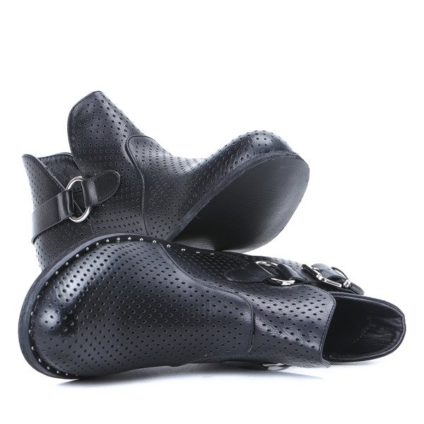 Czarne sztyblety ażurowe Ellis - Obuwie