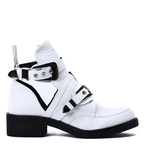 • Workery wykonane ze skóry ekologicznej. Model posiada wycięcia w środkowej części. Buty zapinane dwiema sprzączkami. Świetnie podkreślą twoją codzienną stylizację jak i festiwalowy look!
