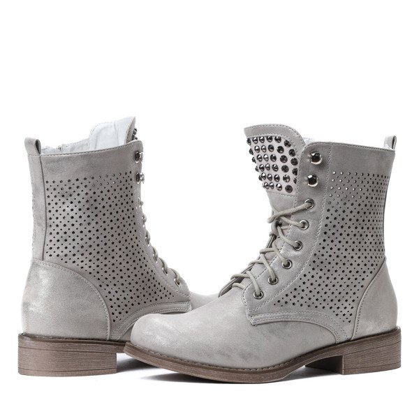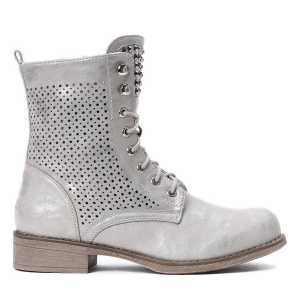 - Rewelacyjne, ażurowe workery wykonane ze skóry ekologicznej. Język zdobiony cyrkoniami. Brak ocieplenia. Model sznurowany i zapinany na zamek. Delikatny, płaski obcas. Idealny dodatek do jesiennej stylizacji!