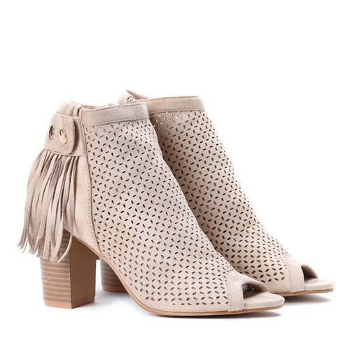 Beżowe botki na słupku Lara- Obuwie