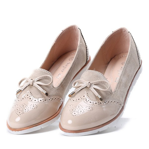 Beżowe mokasyny z kokardką Julia - Obuwie