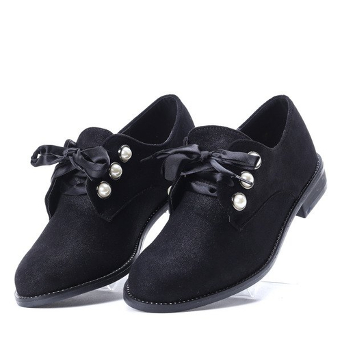 • Rewelacyjne półbuty wykonane z ekologicznego zamszu. Wkładka pokryta skórą ekologiczną. Cholewka zdobiona perełkami, a wokół podeszwy cyrkonie. Model wiązany wstążką. Stanowią idealne połączenie ze spodniami!