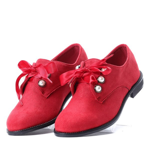 • Rewelacyjne półbuty wykonane z ekologicznego zamszu. Wkładka pokryta skórą ekologiczną. Cholewka zdobiona perełkami, a wokół podeszwy cyrkonie. Model wiązany wstążką. Stanowią idealne połączenie ze spodniami!