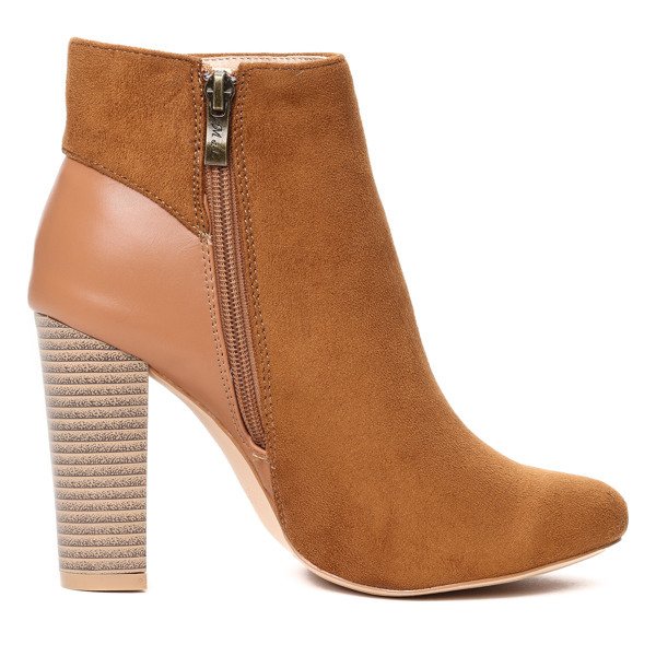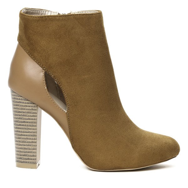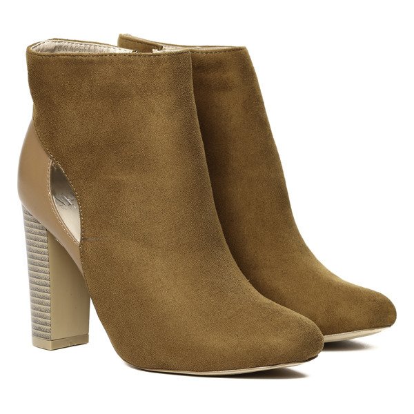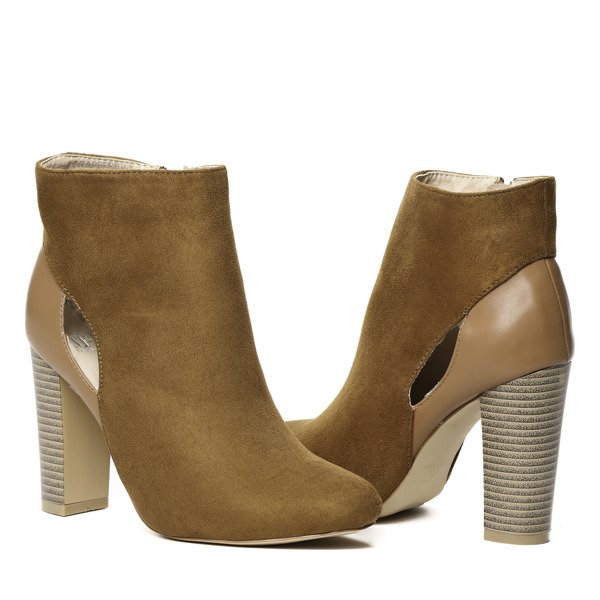 Brązowe botki na słupku - Obuwie