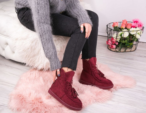 Bordowe śniegowce na płaskiej podeszwie Manon- Obuwie