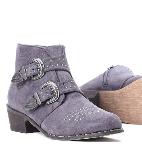 Szare botki na obcasie z dżetami Amelie- Obuwie