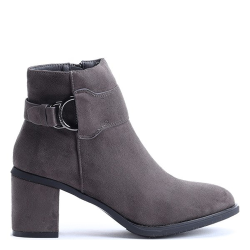 • Klasyczne botki na słupku wykonane z ekologicznego zamszu. Na cholewce ozdobna klamra. W środku delikatne ocieplenie w formie futerka. Model zapinany na suwak. Prosty design, dzięki któremu pasują niemal do wszystkich stylizacji!