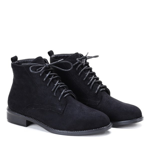 - Eleganckie botki wykonane ze skóry ekologicznej zamszowej. Model wiązany sznurówkami. Buty będą świetnie prezentowały się na nodze.