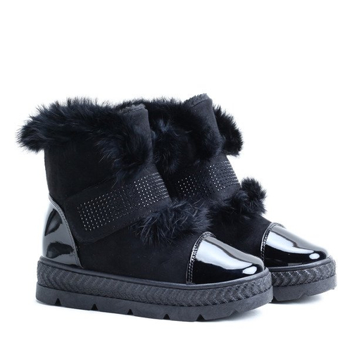 - Wyjątkowo wygodne śniegowce platformie wykonane z ekologicznego zamszu. W środku ocieplenie w formie futerka. Lakierowany nosek i tył. Model zapinany na rzepy. Cholewka zdobiona czarnymi cyrkoniami.