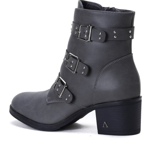 Sivé topánky na nízkom stĺpiku s ozdobnými sponami Aline - Obuv